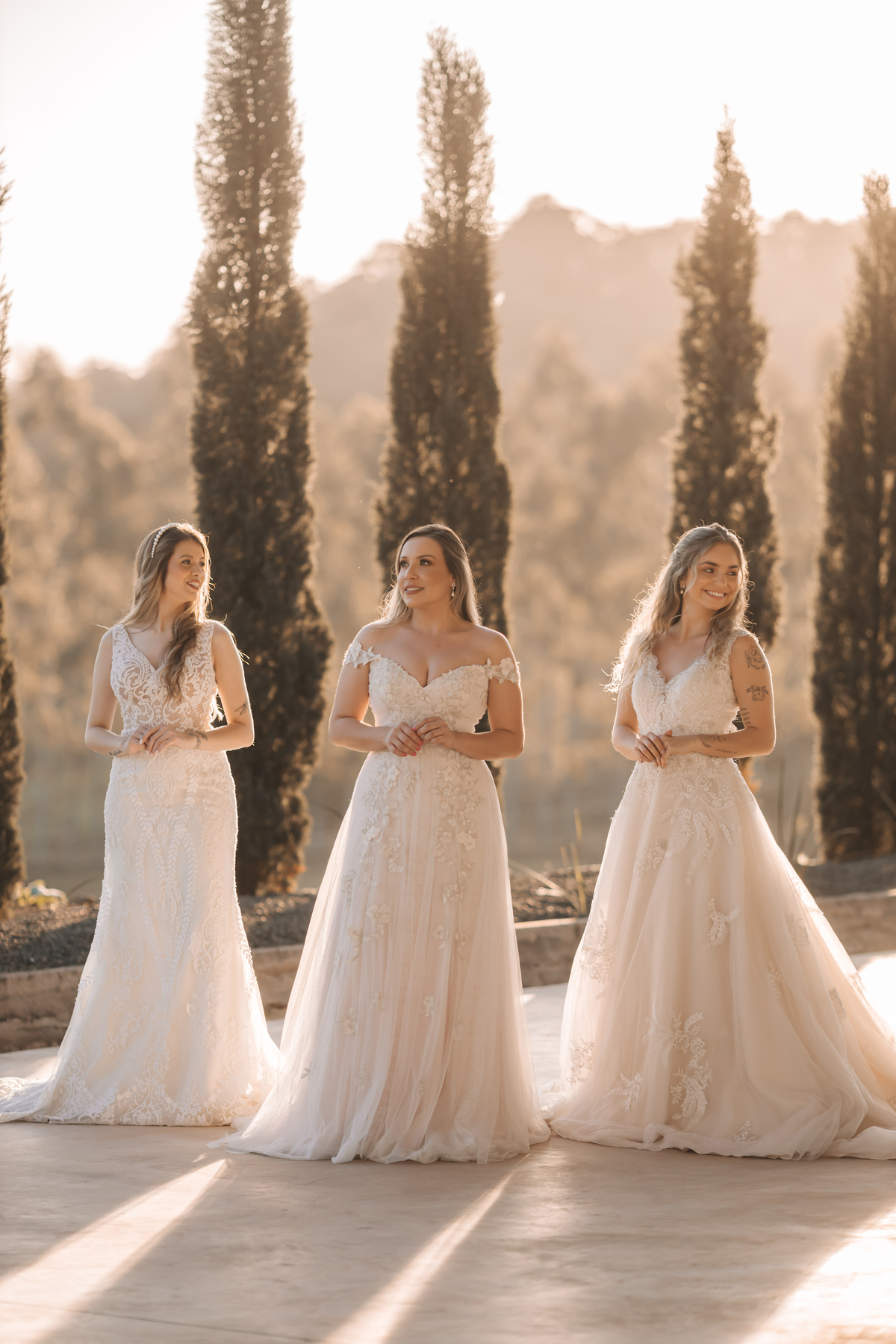 Vestidos de noiva e ocasiões especiais para locação. Projetos únicos milimetricamente conduzidos a mão.