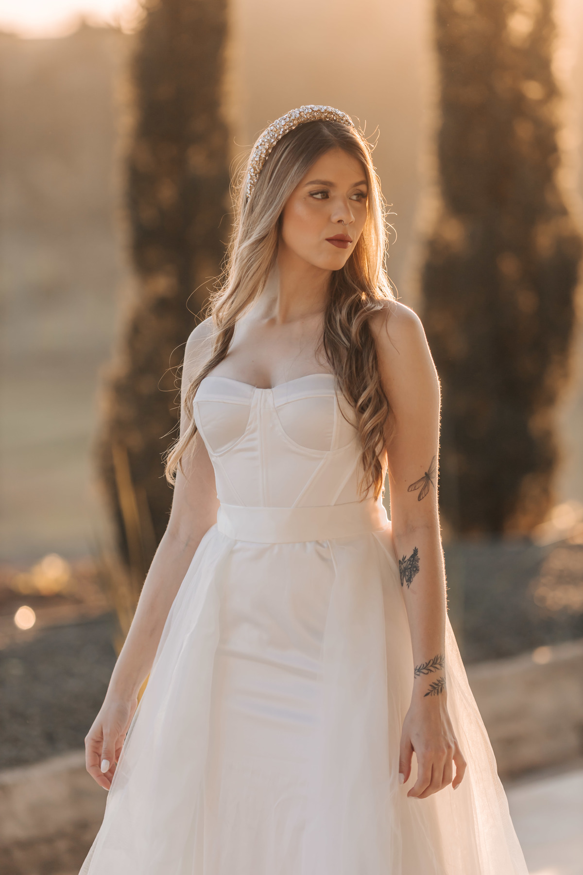 Vestidos de noiva e ocasiões especiais para locação. Projetos únicos milimetricamente conduzidos a mão.